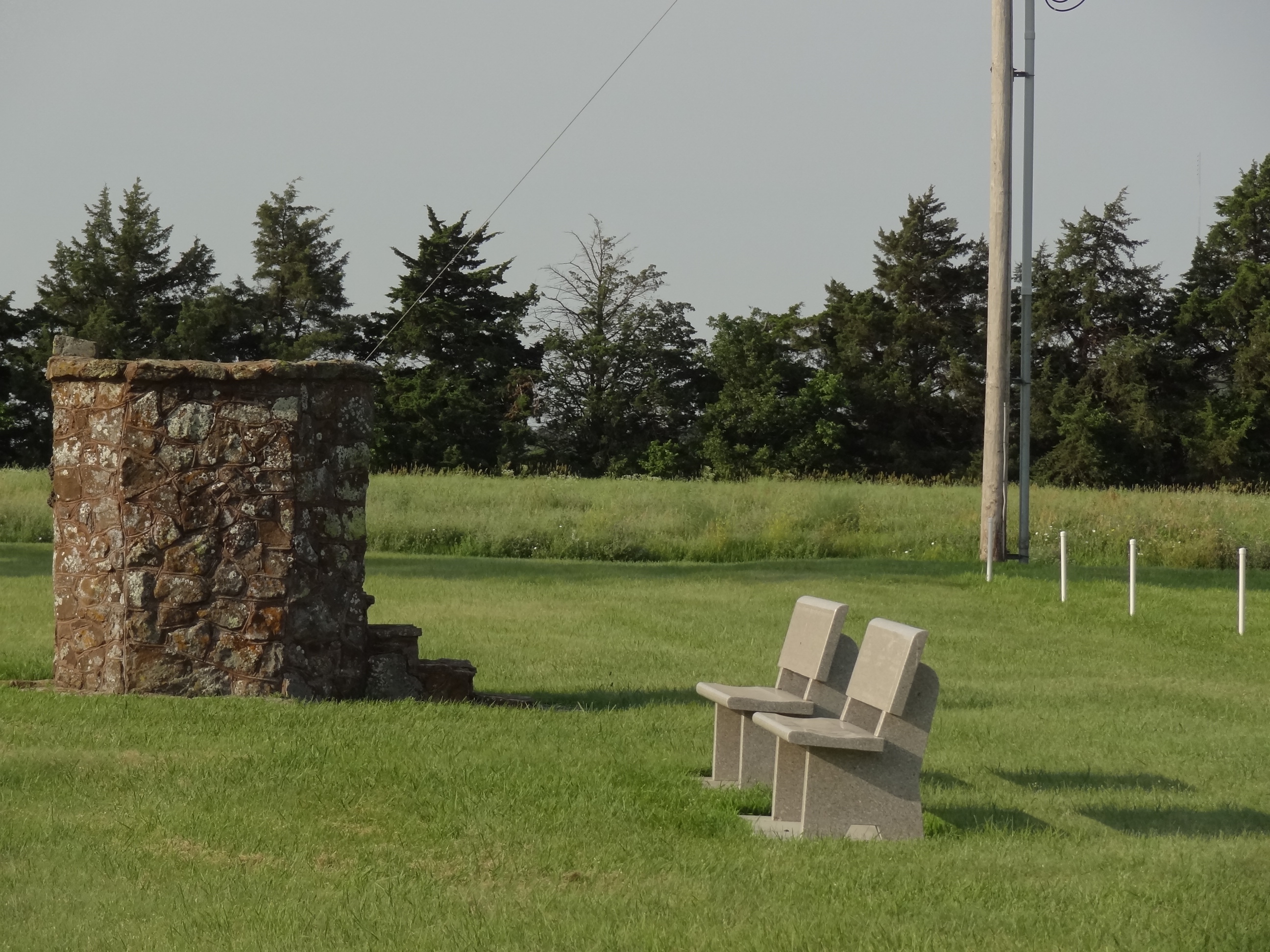The stone pulpit stand on the site of the original sod church