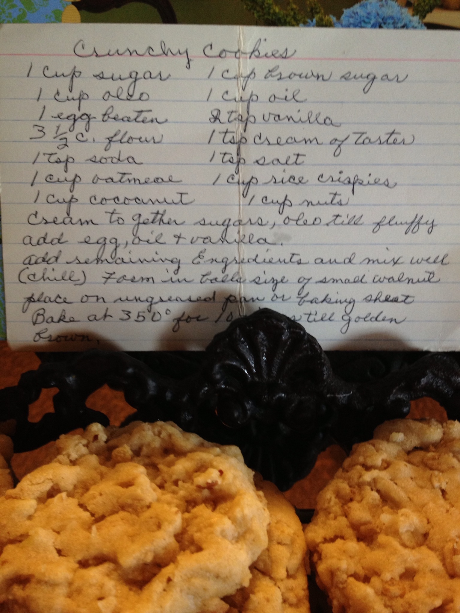 It was a rather dreary, drizzly day. I decided to bake some cookies and these are one of my favorite cookies that my Grandma would make. The recipe is in her handwriting and I cherish it. I have quite a few of her recipes, she was a great cook, as are all the women in my family (and some of the men too!).